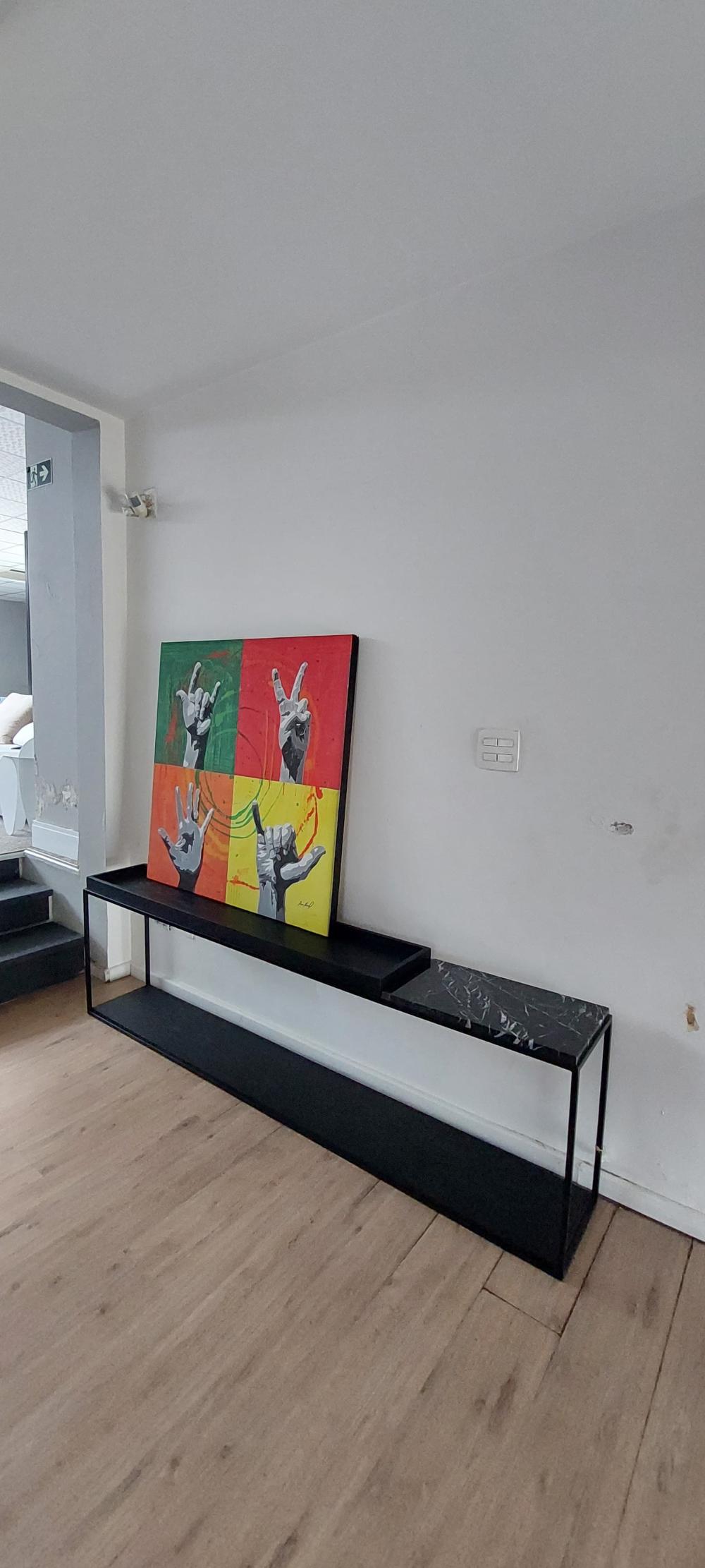 Aparador Sofá Estrutura em inox pintado, bandeja em lâmina de madeira ebanizada e mármore. 50% OFF