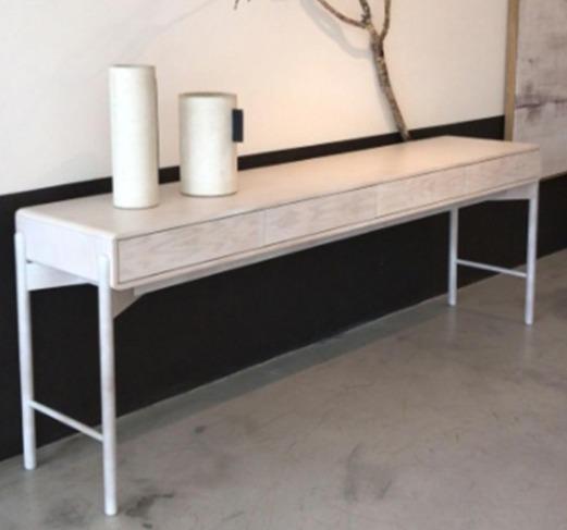 Aparador com 04 gavetas, em lâmina de madeira carvalho em pintura off white