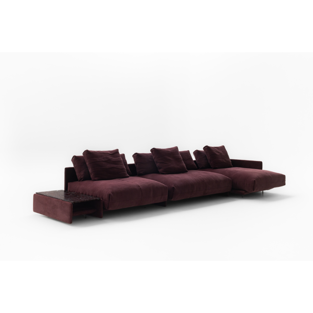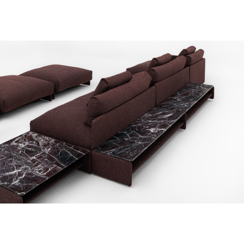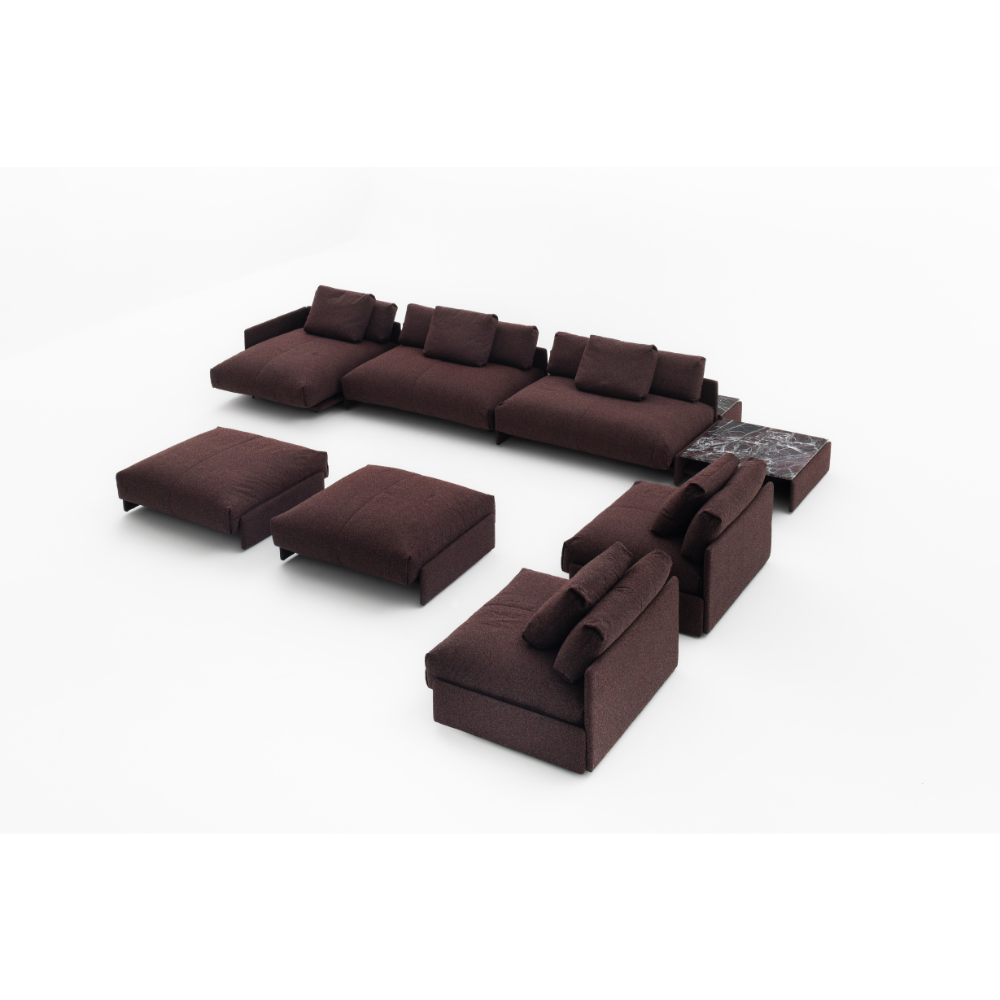 gap é mais do que um sofá, um sistema. módulos estofados que se conectam por meio de vãos estruturais, marcando ritmo e desenho. o assento e o encosto flutuam entre montantes com precisão e leveza. mesas e aparadores se integram ao conjunto, com tampo estofado ou em pedra. aberto a diferentes composições de uso e material, propõe uma ocupação silenciosa, mas presente. um ponto de equilíbrio entre conforto, estrutura e desenho contínuo.