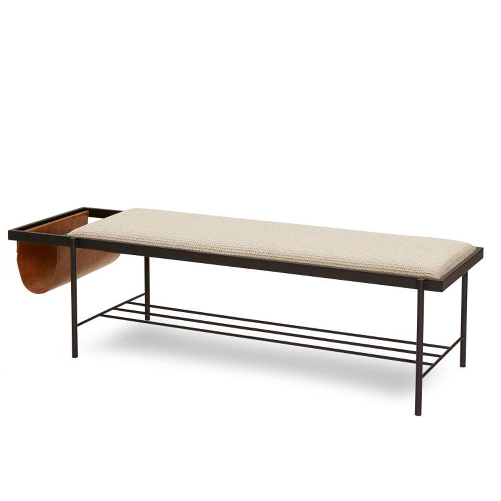Uma ótima definição da palavra banco. Altura do assento correta, ocupa pouco espaço, sentam até 3 pessoas, suporte inferior para bolsas e mochilas e tem um apoio lateral, para descarregar tudo aquilo que a gente leva nos bolsos. Seu desenho limpo, com detalhe para os diferentes perfis de metal...tudo em equilíbrio.
