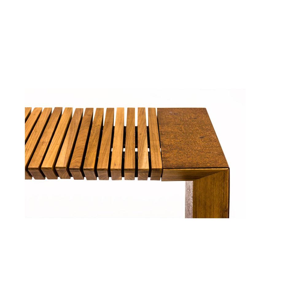 O nome do banco é o mesmo do bairro mais sofisticado e antenado do Rio de Janeiro. O design é obrigatoriamente contemporâneo, tem estrutura sólida mas se apresenta com leveza. Passeia por características cariocas, brinca com assimetria, inclinações, curvas, chanfros e ripados, insinua movimento. Desenvolvido em madeira e aço.