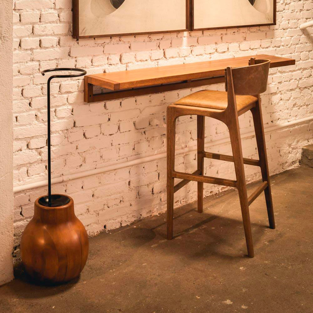 A Banqueta Helga está intimamente ligada com as suas linhas. As pernas dianteiras perpendiculares ao chão, enquanto as traseiras sobem inclinadas e continuam como estrutura para o encosto, que possui um design único. Toda a sua estrutura entrega um design de excelência para todos os gostos.