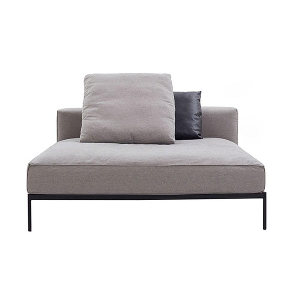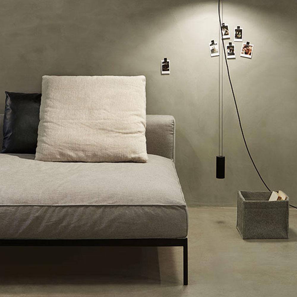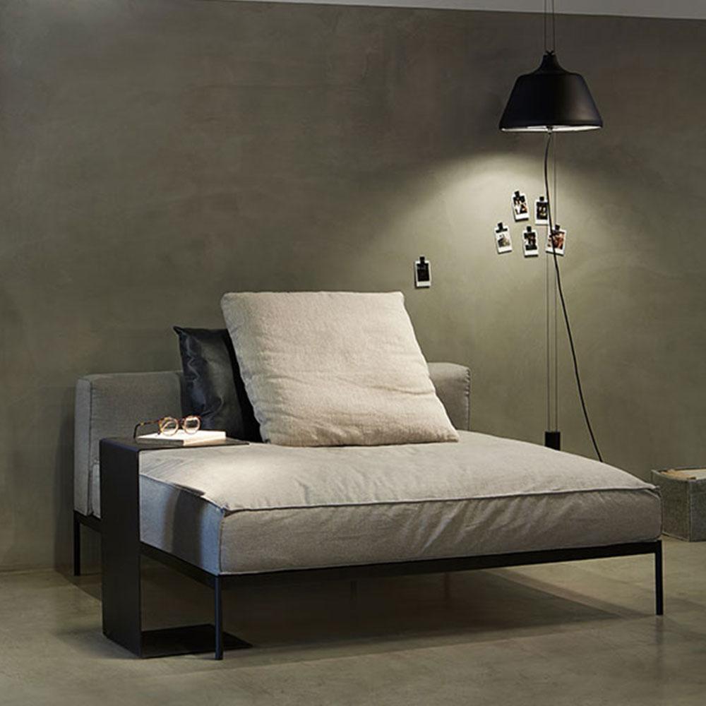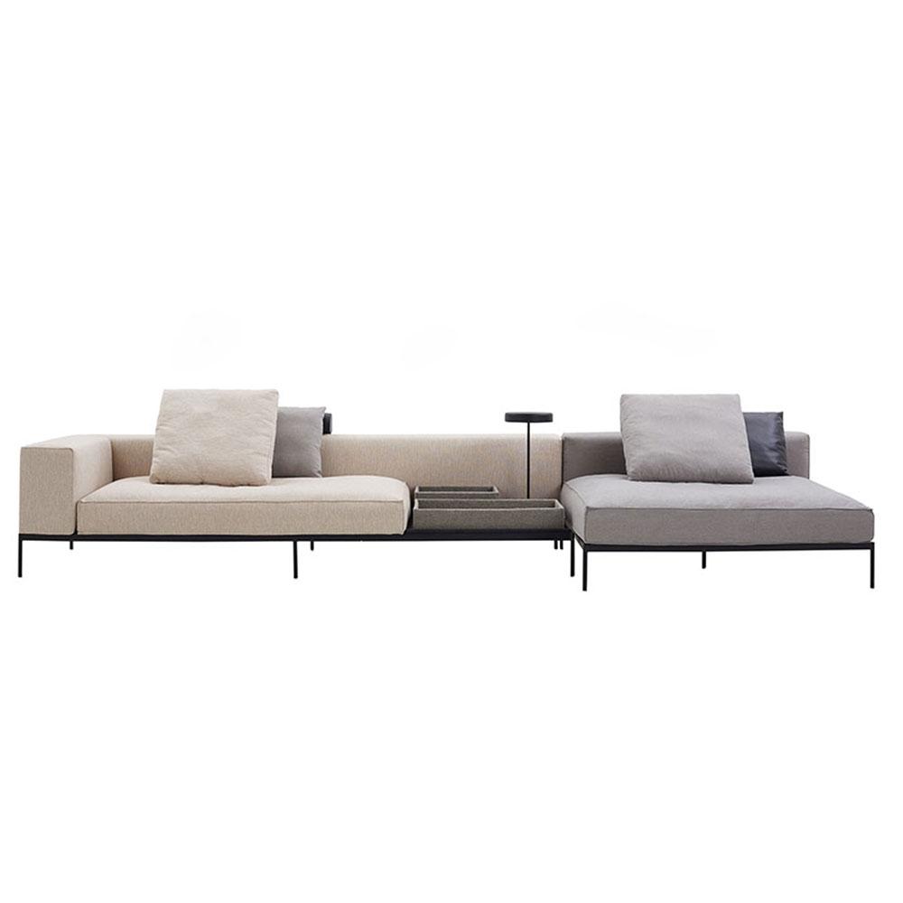 Todo o sofá é literalmente montado sob uma única estrutura metálica, braços, encostos e assentos são sustentados pela mesma, criando blocos e planos que convidam ao descanso e o prazer de viver a casa.