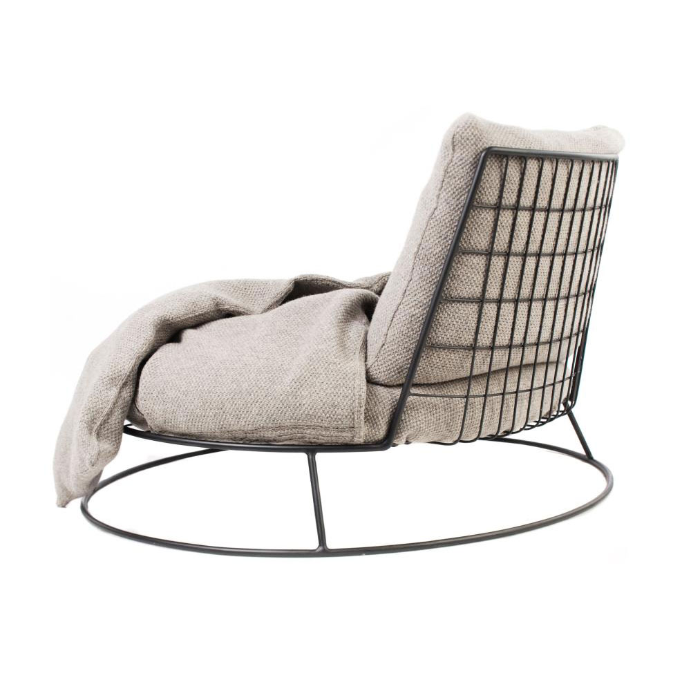 Seu desenho limpo e convidativo, faz da poltrona um objeto de desejo, que naturalmente atende a todos os espaços, de sacadas, a sala de tv e estar. Sua manta costurada na almofada do assento, foi desenvolvida para aconchegar bebês, pets ou simplesmente quem deseja um calorzinho a mais em casa.