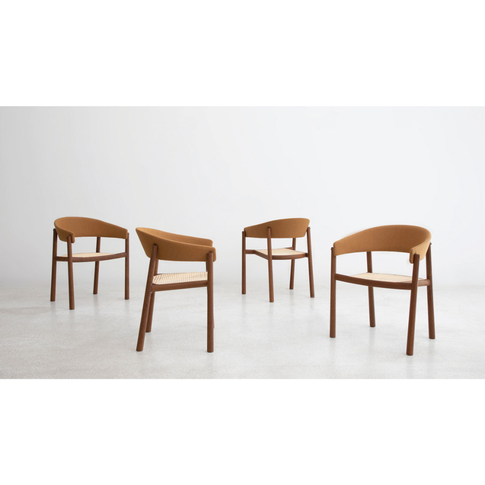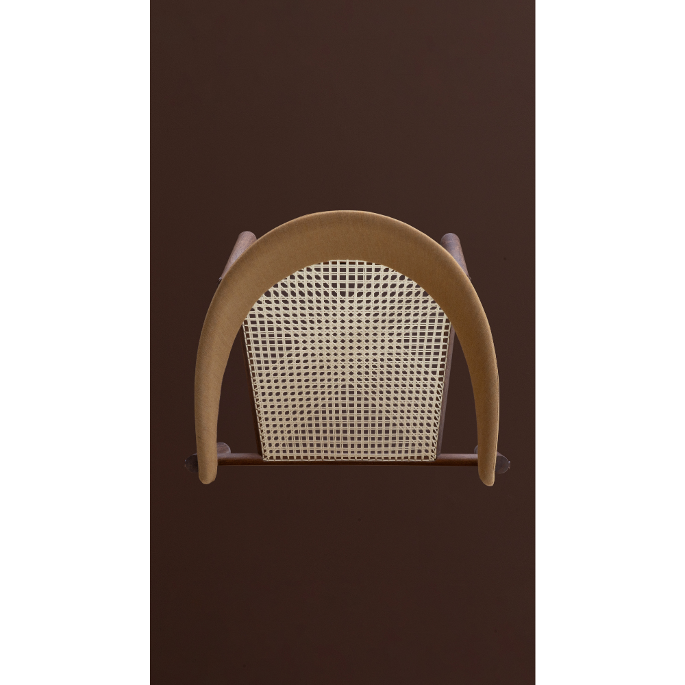 A cadeira Equador é a peça que deu origem à linha Equador, que hoje conta também com Poltrona, Banco e Mesa. A cadeira apresenta as principais características da linha: é marcada pela combinação de pés cônicos e travessas e ovaladas, num desenho que une de forma sutil traços de natureza orgânica e traços geométricos estruturantes. A cadeira Equador tem forte caráter escultural, e nasceu da vontade de explorar uma tipologia clássica do design: a do encosto em curva que é sustentado pelos quatro pés e que abraça o usuário. As linhas da parte estofada possuem grande fluidez, e sua diagonal circular parece mimetizar a linha imaginária que divide o planeta em hemisférios – daí a origem do nome da peça. O assento em palha explora outra tipologia clássica do design, trazendo, contudo, uma atualização. O desenho da trama confere personalidade à cadeira e tornou-se marca da linha, uma vez que o mesmo padrão é usado no Banco Equador e na Poltrona Equador.
