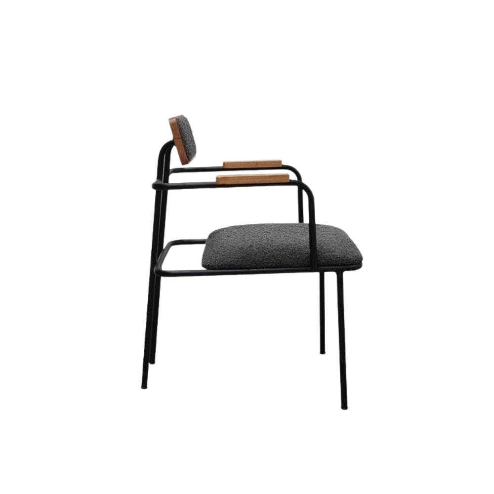 A cadeira Flow celebra o conceito de fluidez com uma estética leve e envolvente, combinando estrutura metálica esguia com assento ergonômico e acolchoado que conforta o corpo.