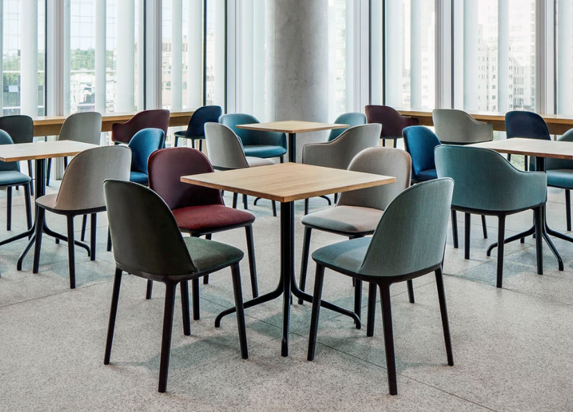 A Softshell Side Chair, cujos contornos suaves são definidos por seu estofamento macio, oferece um assento excepcionalmente confortável e dimensões compactas: as nervuras verticais ocultas na parte superior do encosto oferecem flexibilidade e considerável liberdade de movimento - e conforto excepcional mesmo durante períodos prolongados sentado . A Softshell Side Chair tem uma base de quatro pés feita de plástico robusto que acentua a elegância discreta do design.