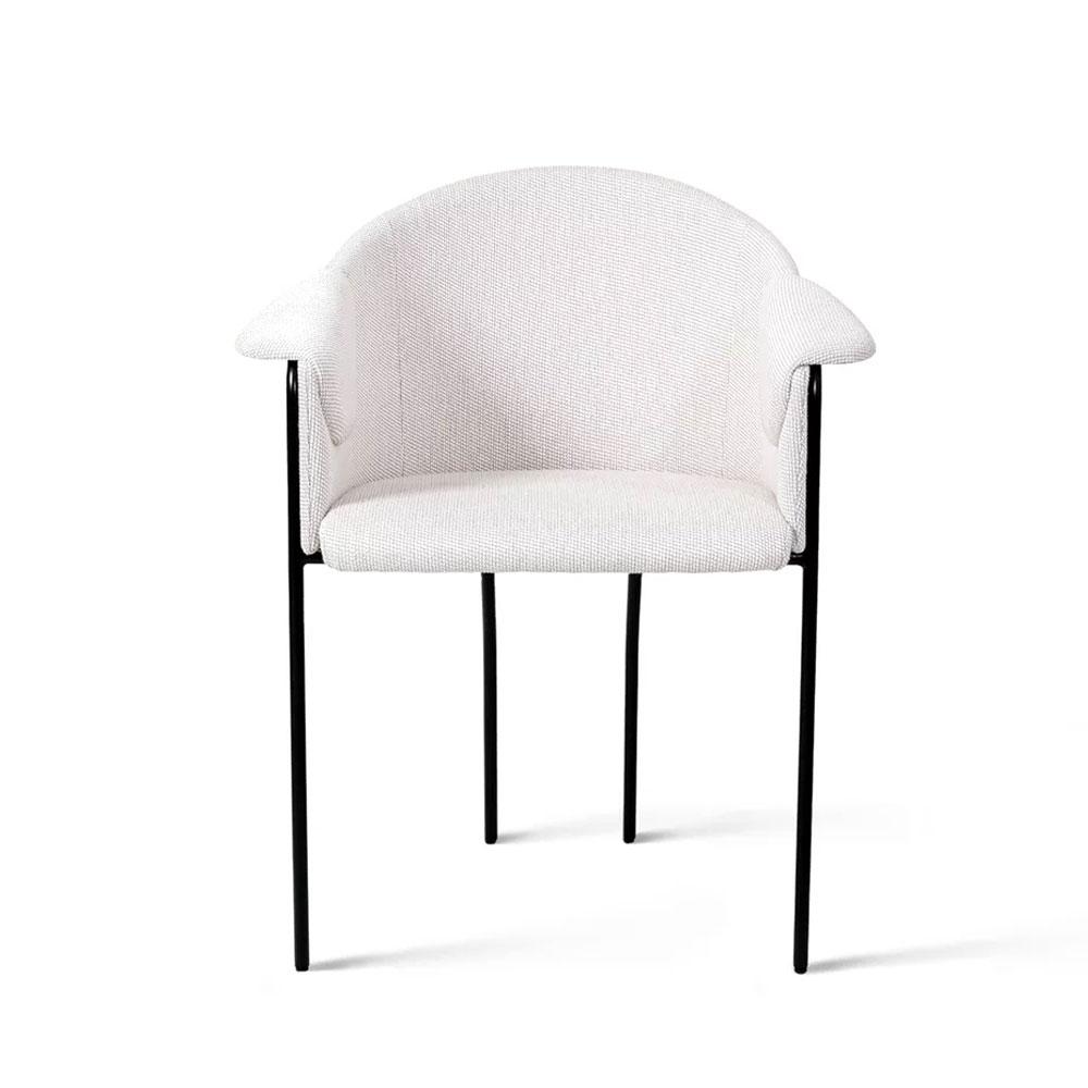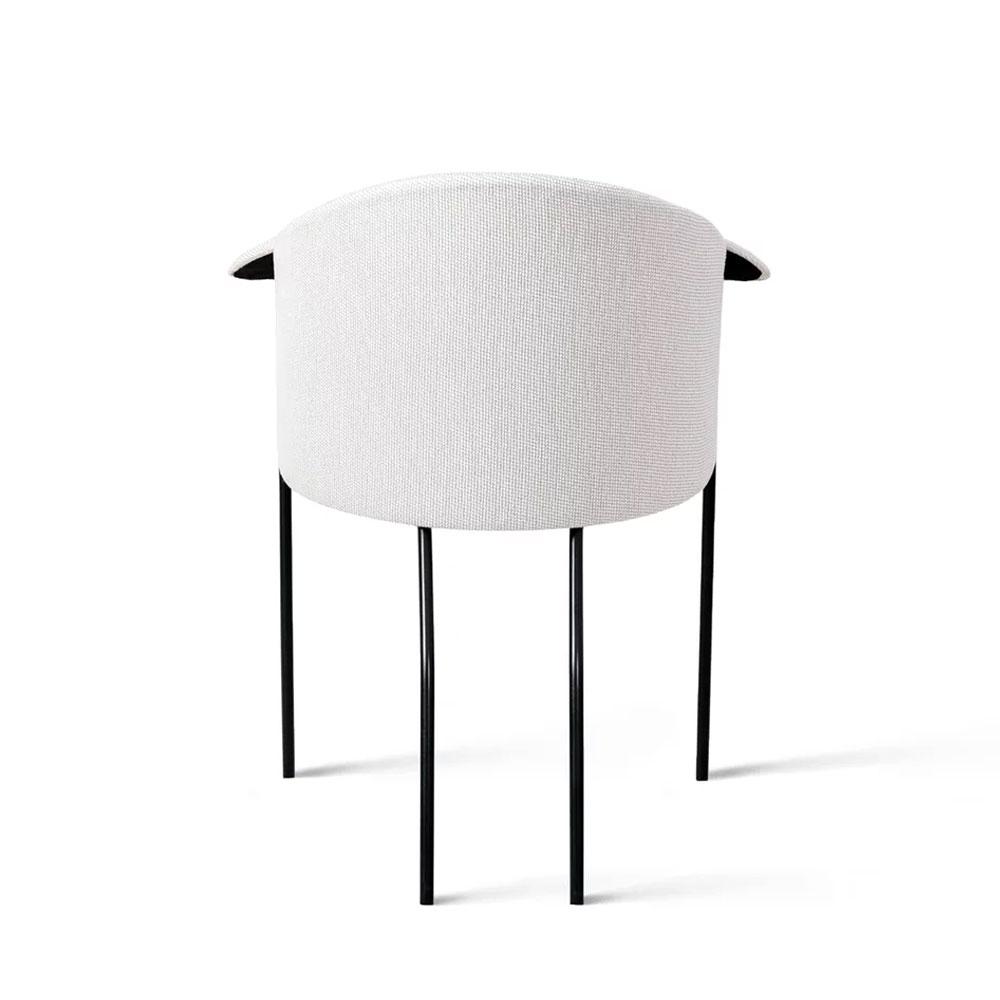 Uma cadeira de alma vintage e design contemporâneo. Estruturada por uma concha de madeira revestida com espuma e estofada em tecido ou couro. Pés em aço carbono com pintura eletrostática.