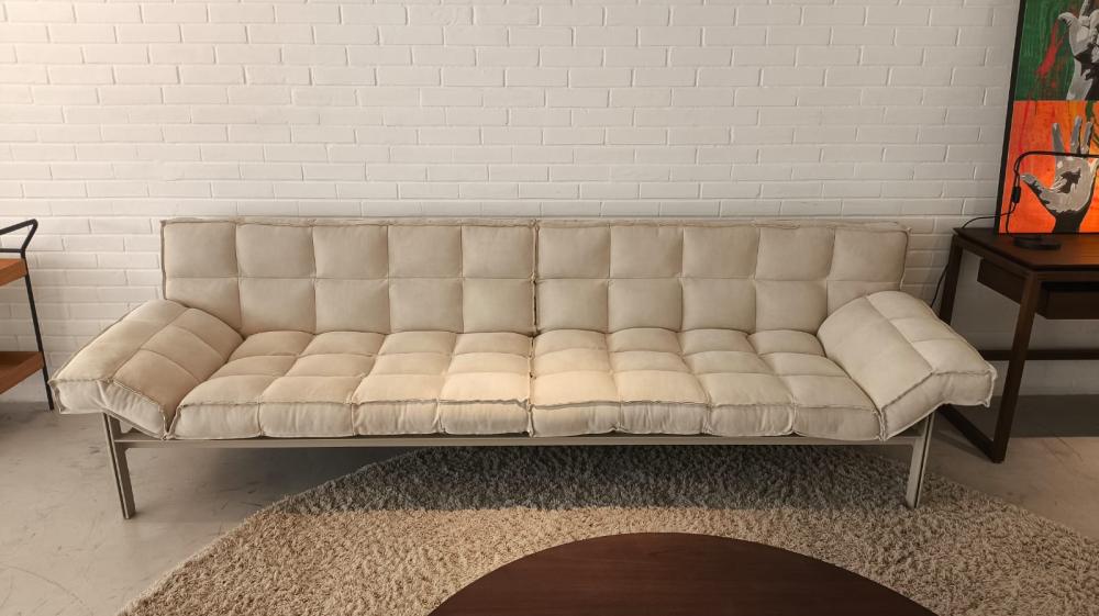 A ideia era projetar adequadamente uma peça que tivesse estofamento simples, separado da estrutura, e com conforto. Estrutura de aço pintada em diversas cores e enchimento em fibra sintética.