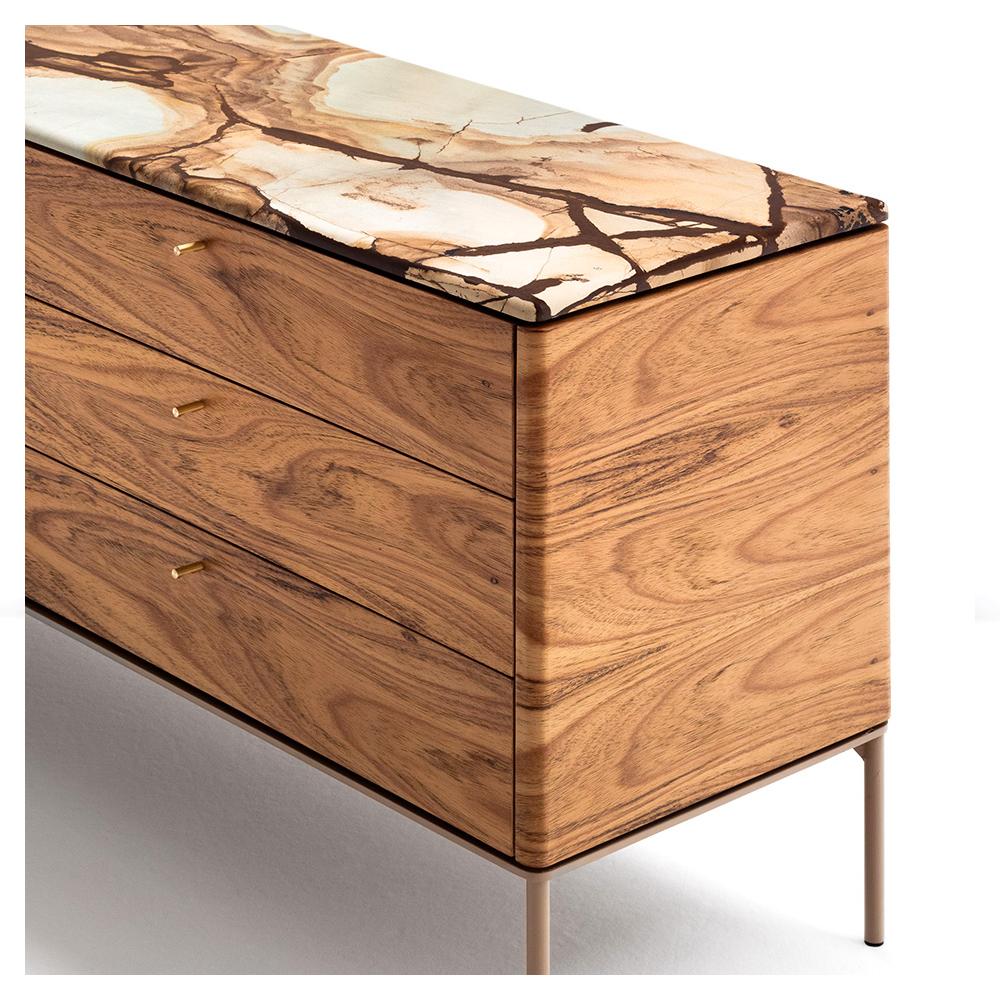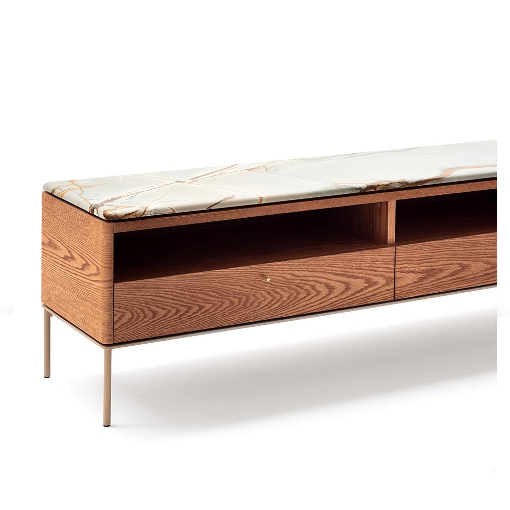 Buffet com estrutura de MDF laminada e pés delicados em aço.
