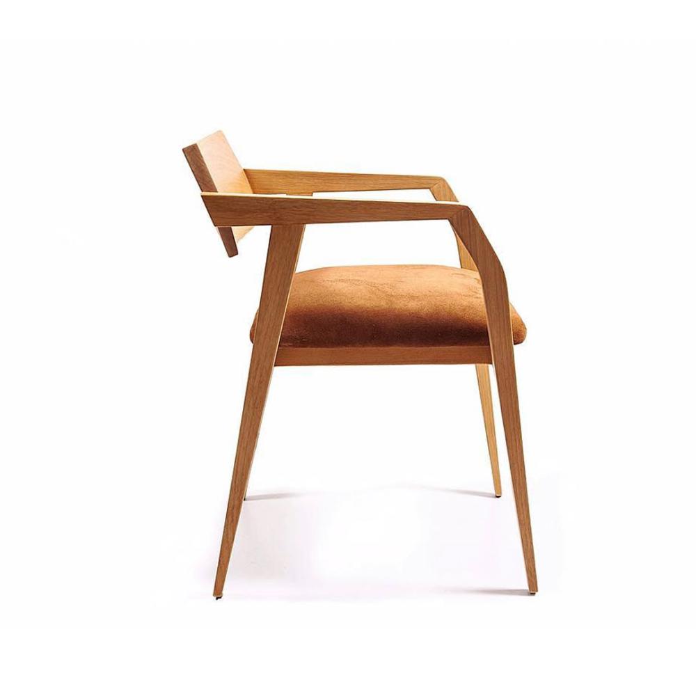 Cadeira com estrutura em madeira tauari laminado. assento e encosto estofado em tecido.