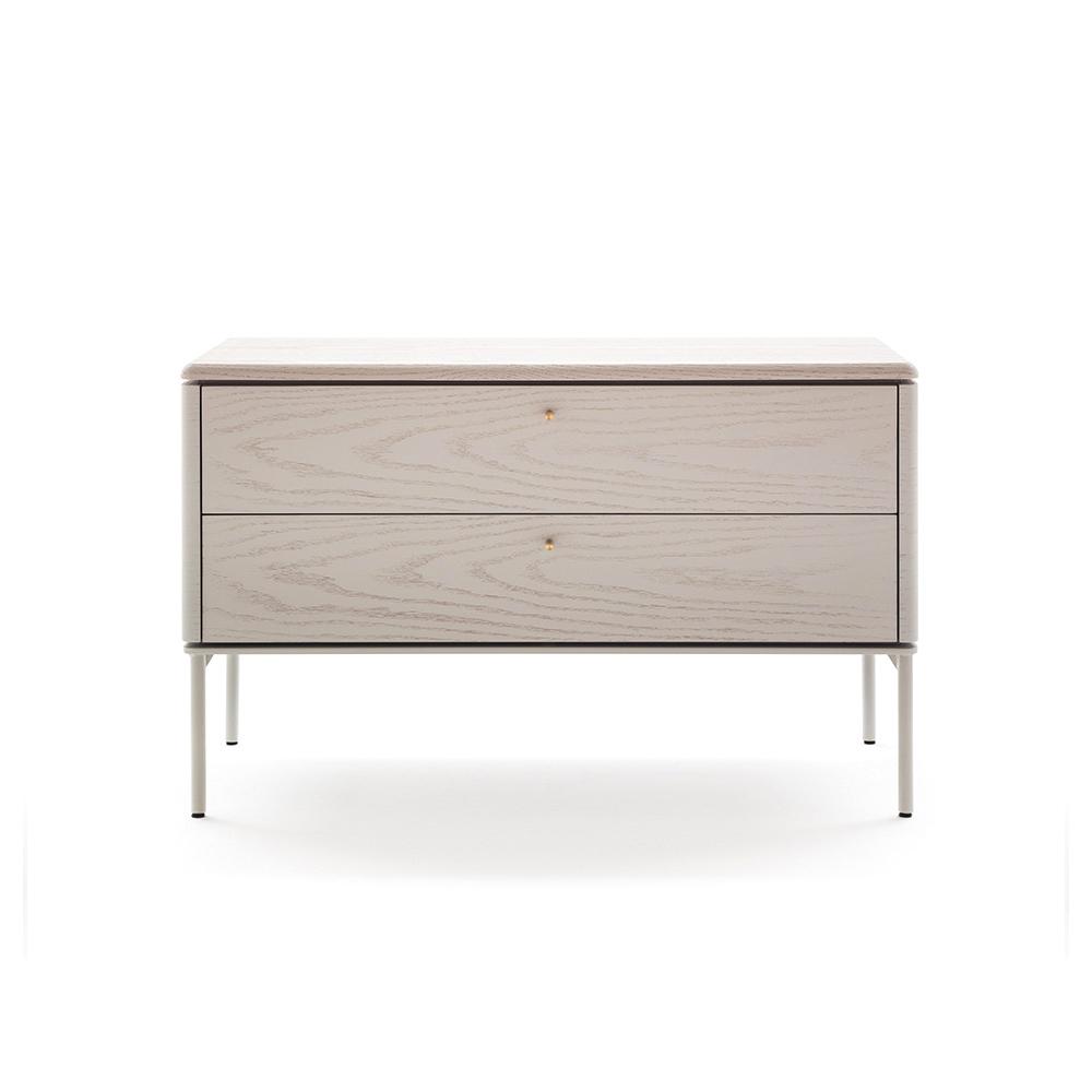 linha de gaveteiros com estrutura de MDF laminada e pés delicados em aço.