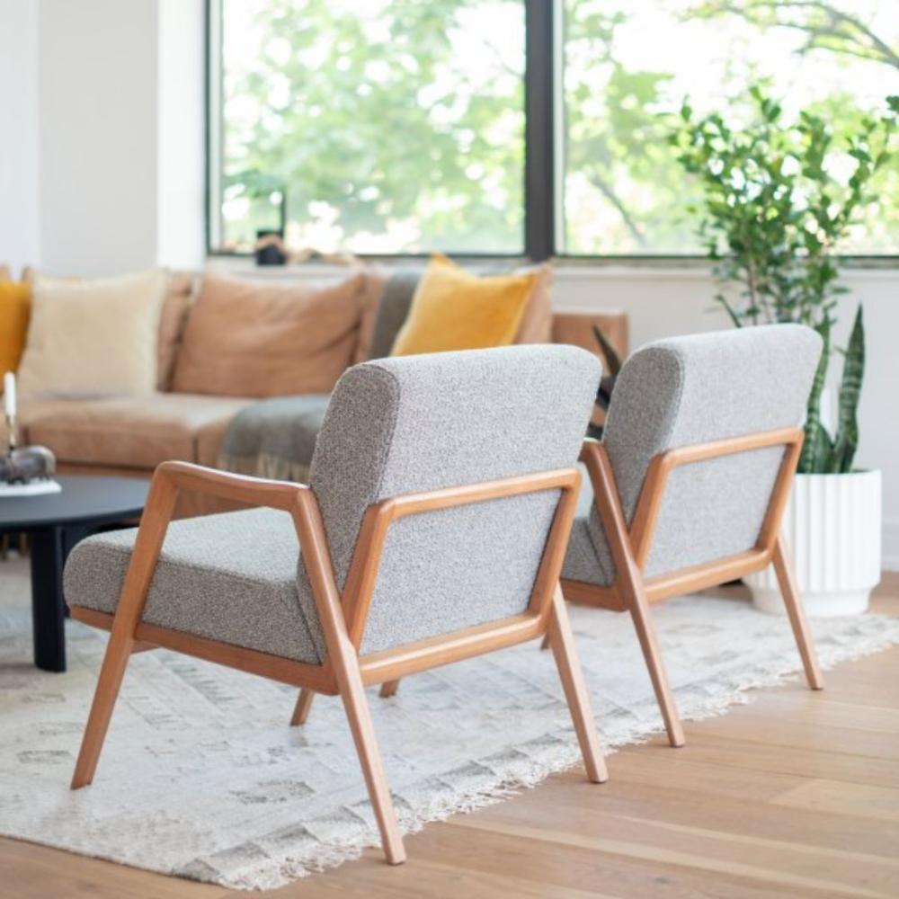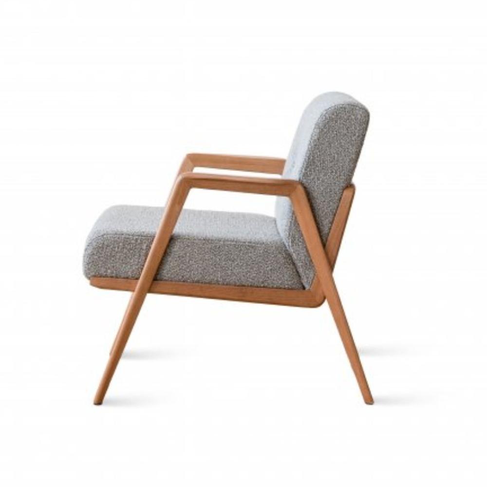 Poltrona em madeira maciça com assento e encosto estofados. VER DIMENSÕES