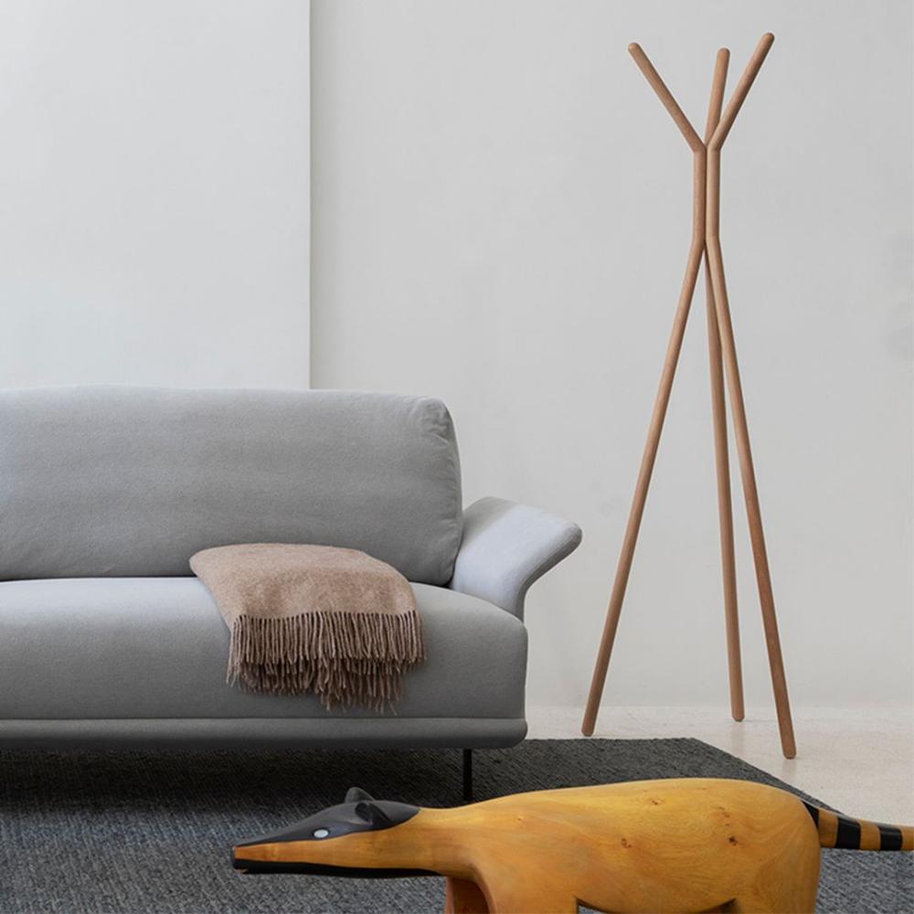 Um desenho conciso que remete ao mesmo tempo a um tripé, um para-raio, uma forquilha ou mesmo uma fogueira. Feito inteiramente de freijó maciço, cada uma das linhas do mancebo Filhote é esculpido a partir de uma única peça de madeira.