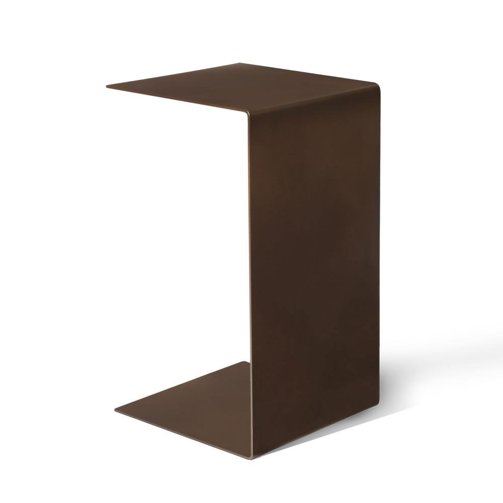Uma mesa de apoio simples e extremamente funcional. Essa peça tem várias funções, pode ser uma mesa ou uma banqueta. Serve ainda para encaixar no sofá, e confere suporte para pratos, notebook e por aí vai... Feita em chapa de aço dobrada e acabamento com pintura eletrostática nas cores: Preto, corten ou verniz.