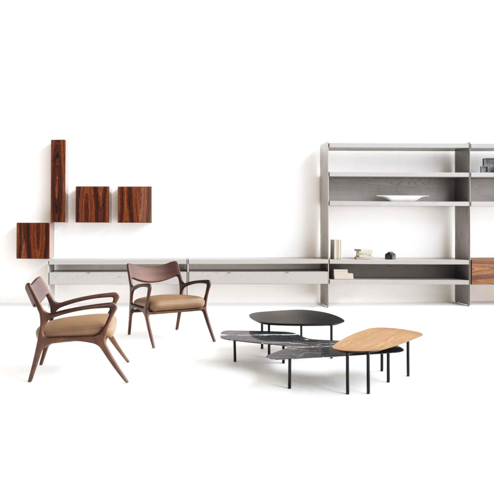 A Mesa de centro Z é como uma pintura: uma composição de diferentes formas e alturas que podem ser personalizadas e arranjadas para cada gosto ou espaço, uma opção moderna e prática que enriquece as decorações.