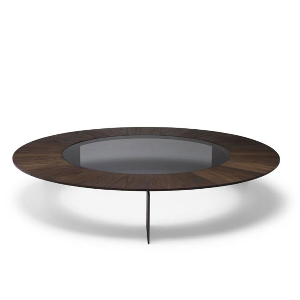 De formato leve e design moderno, a mesa disco traz uma composição única, entre vidro e lâmina. A tríade de seus pés em chapas de metal laminadas nas faces, complementam de maneira harmoniosa seu grande tampo redondo, que possui um aro em madeira e centro em vidro. É um produto que se apresenta de forma imponente a qualquer ambiente.