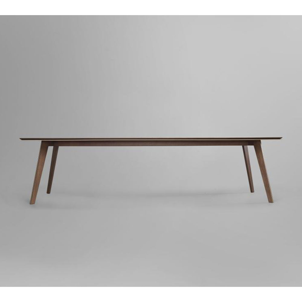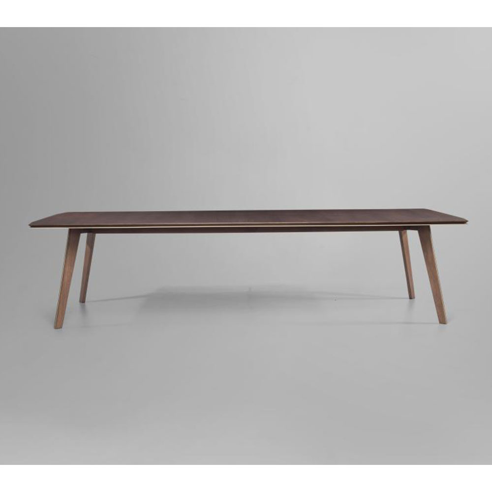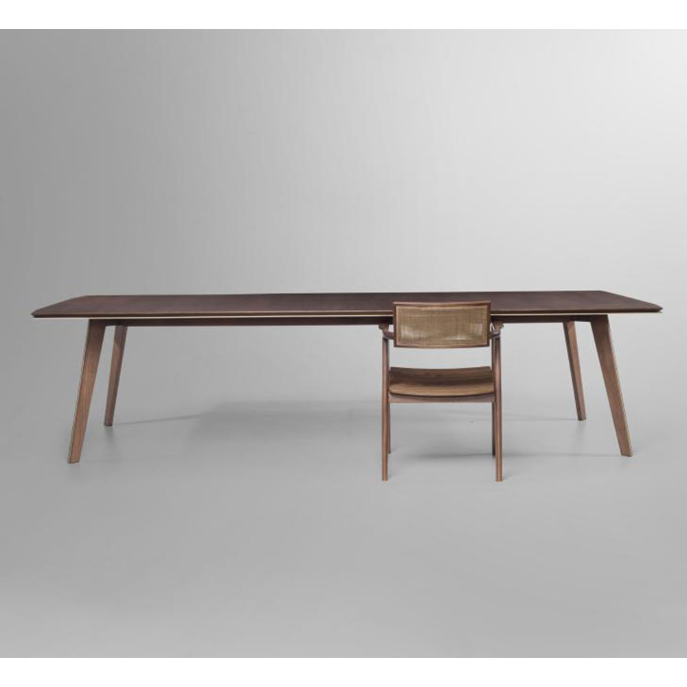 A mesa de jantar Marc atrai a atenção pelo traço preciso e elegante da linha metálica que percorre toda a estrutura da mesa. Aqui, o tampo e os pés em madeira equilibram as texturas e criam uma composição bela e sofisticada, revelando a qualidade e resistência da mesa.