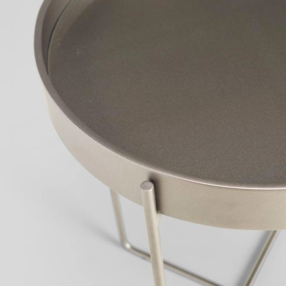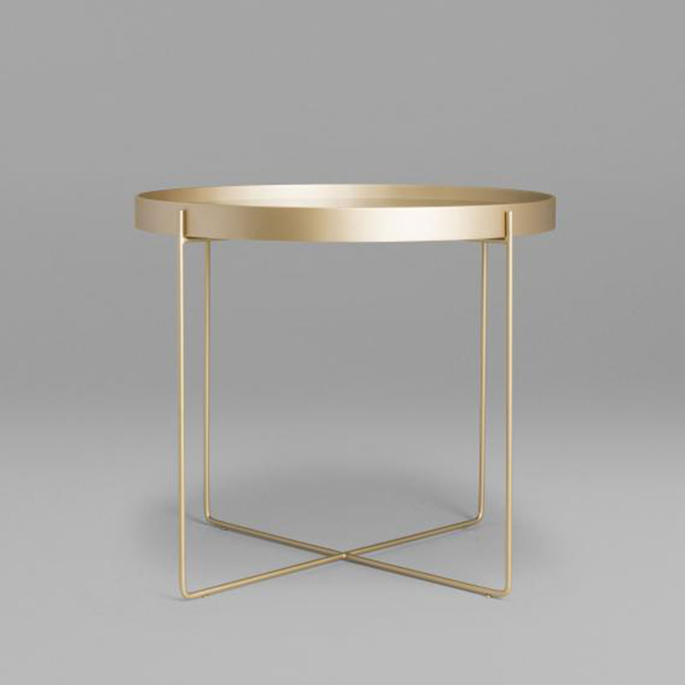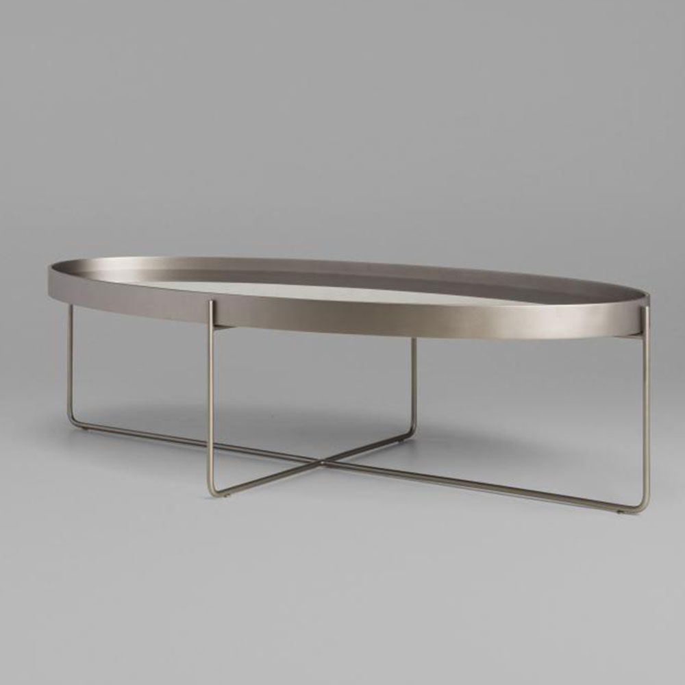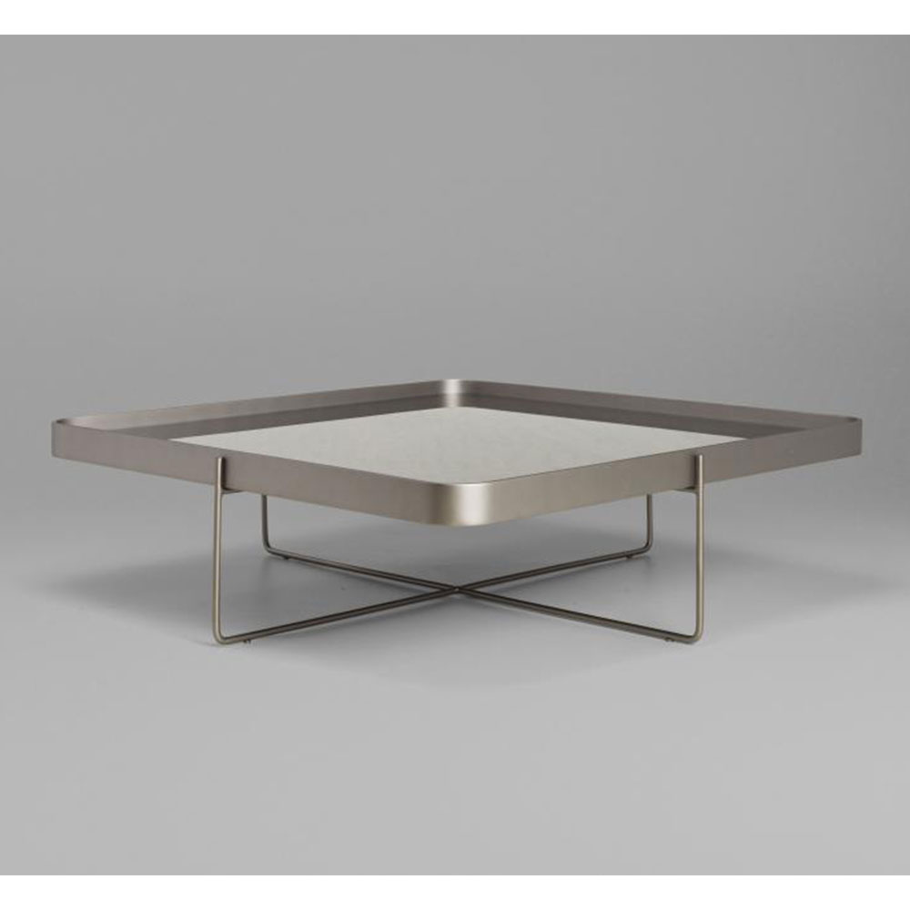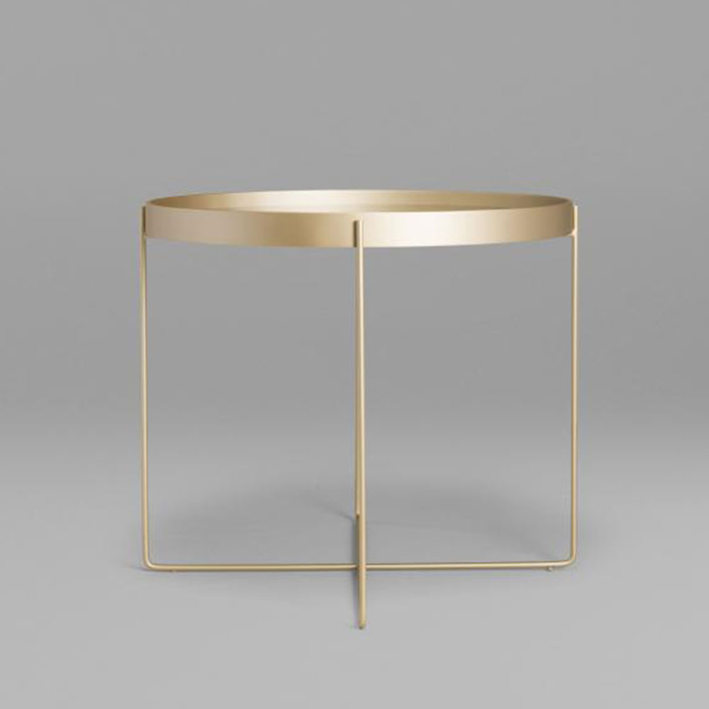 A mesa Tubos recebe esse nome tanto pela estrutura cilíndrica que compõe a base, quanto do tampo, que também sugere uma seção tubular. A estrutura metálica com base sobreposta em cruz tem as extremidades superiores alongadas para receber o tampo em madeira laminada. As bordas do tampo conferem um detalhe especial para essa mesa.